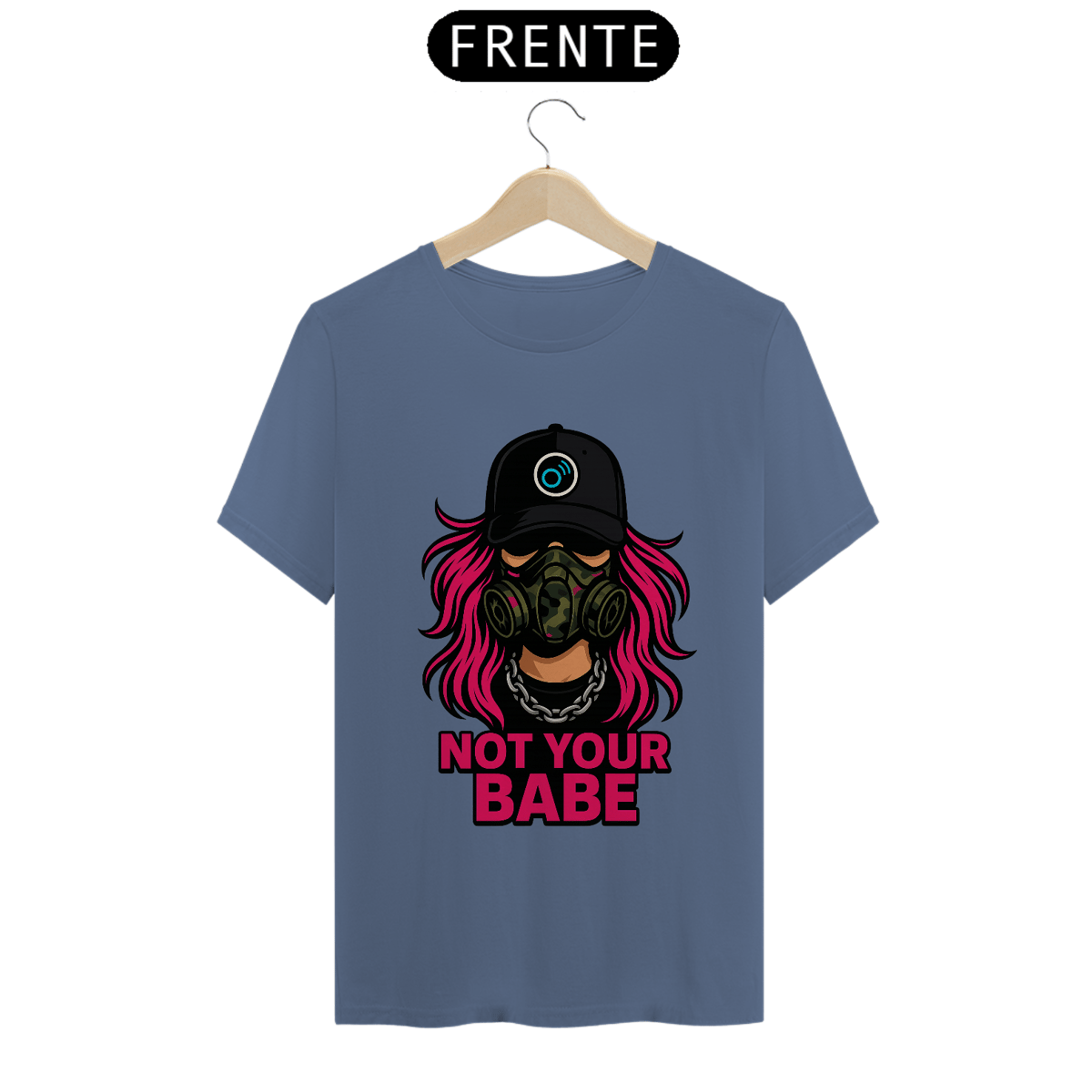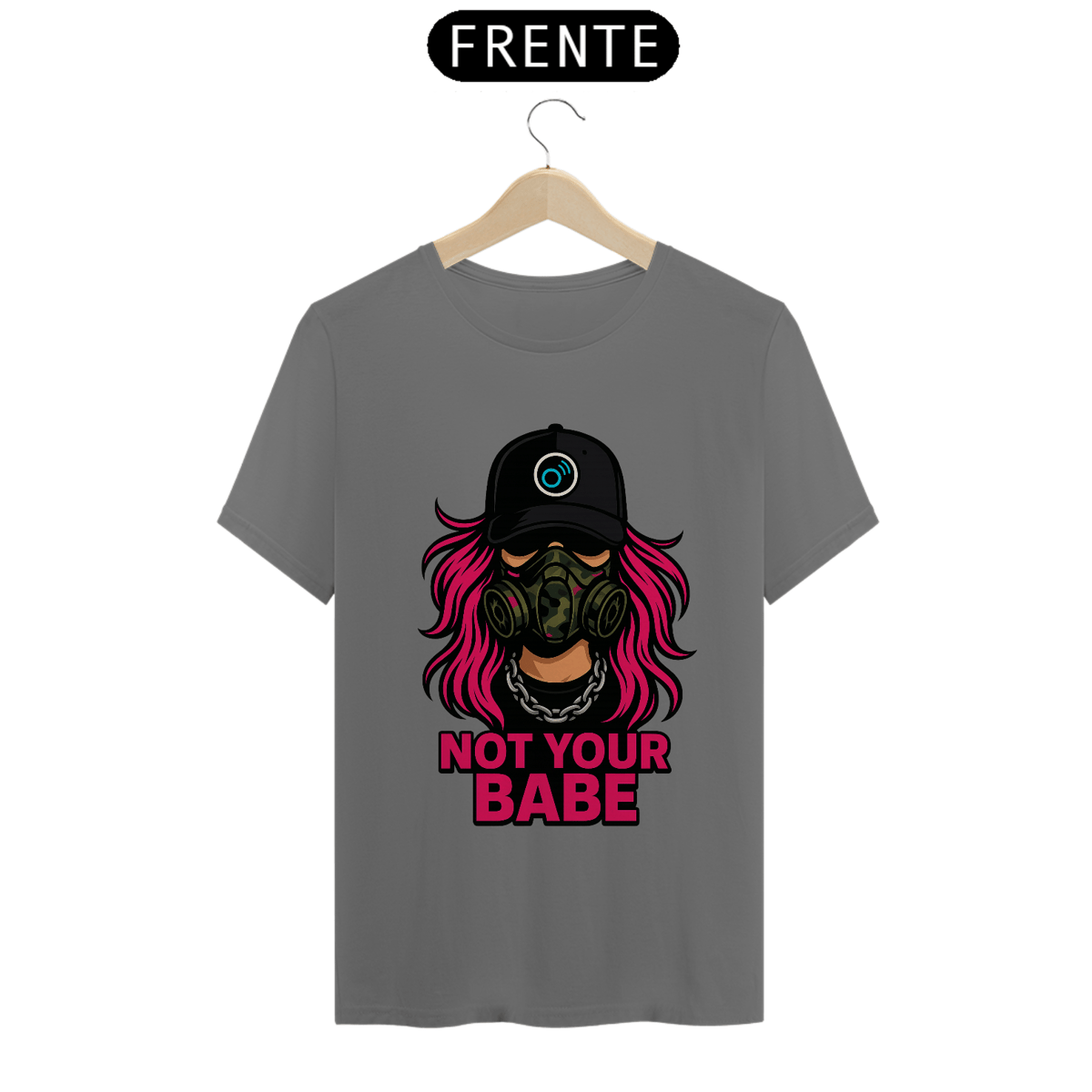 A Camiseta Not Your Babe da OxVibe é um recado direto a qualquer um que ainda tenta rotular presença feminina. A estampa traz uma figura forte com cabelo rosa neon, máscara tática camuflada, corrente de aço e a frase em caixa alta: NOT YOUR BABE. Visual de confronto com linguagem gráfica de rua e tom sarcástico.