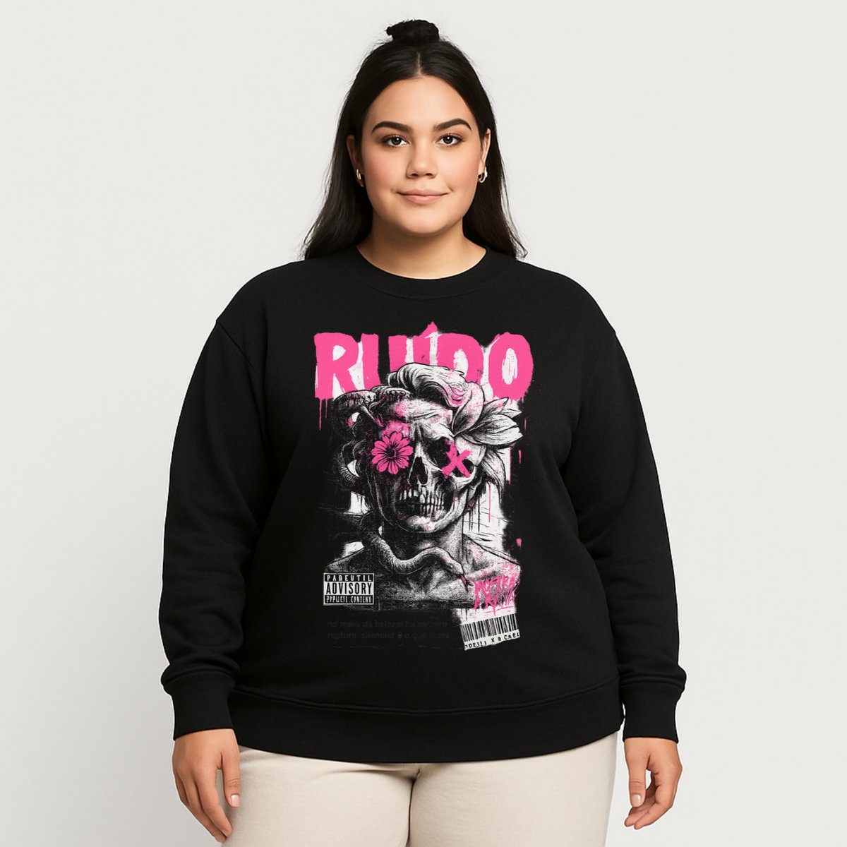 Produzido em malha mista premium (50% algodão / 50% poliéster), com interior flanelado, punho e barra em retilínea e modelagem oversized unissex, o RUÍDO veste desconforto com estilo.